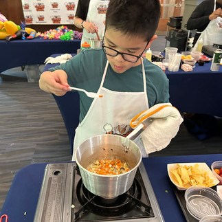 Throughout the week, junior chefs practiced important culinary skills like knife safety, sautéing, and dessert decorating—all while working together as a team and having fun.